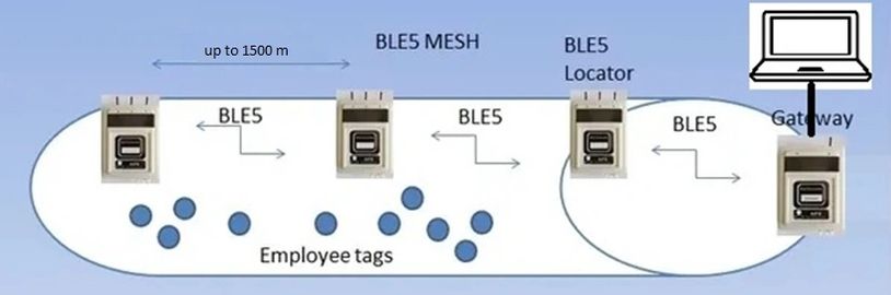 המערכת כוללת בקרים הקולטים שידור מצמידי או תגי העובדים, המידע בין הבקרים עובר בתקשורת בלוטות לטווח ארוך מבקר לבקר ומשם ליחידה המרכזית המחשבת את מיקום העובד בטריאנגולציה משוקללת
